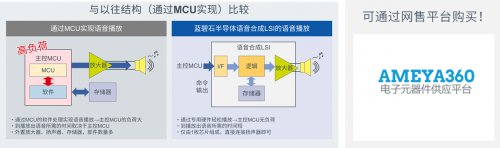 由于藍碧石半導體的語音合成LSI中內置有通信接口、邏輯、存儲器、放大器,可構建不依賴于主控MCU的語音輸出系統(tǒng),并可減少軟件設計工時,因而在車載應用領域的應用越來越廣泛。
