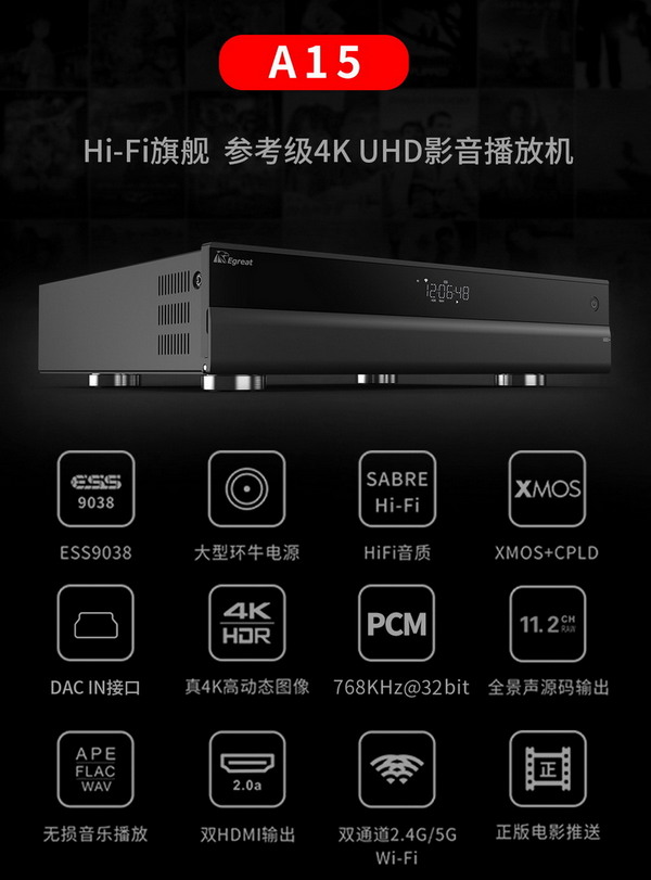億格瑞Hi-Fi發(fā)燒級(jí)4K UHD播放機(jī)A15