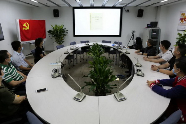 (圖為黨支部書記范維帶領(lǐng)全體人員學(xué)習(xí)“新思想”)