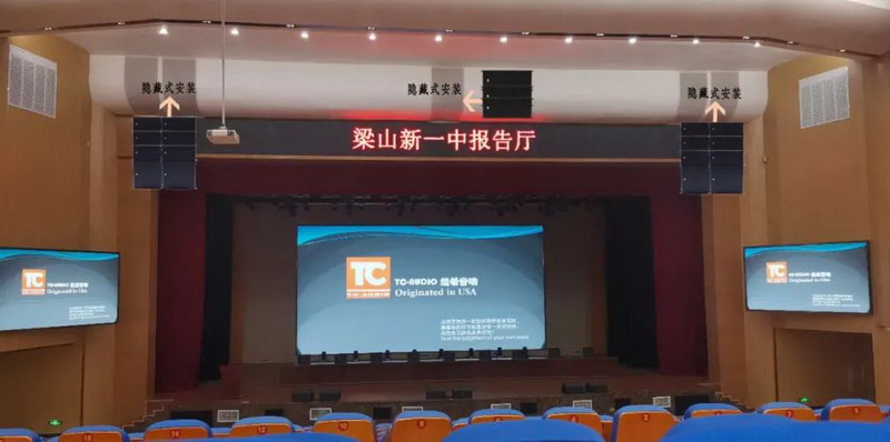 梁山一中新校各項(xiàng)建設(shè)已順利完工,新校能夠容納90個(gè)教學(xué)班、4500名學(xué)生,總建筑面積15.5萬平方米。綜合樓西側(cè)為容納1200人的學(xué)術(shù)報(bào)告廳,TC-AUDIO首先交出成績單,為學(xué)術(shù)報(bào)告廳擴(kuò)聲保駕護(hù)航。