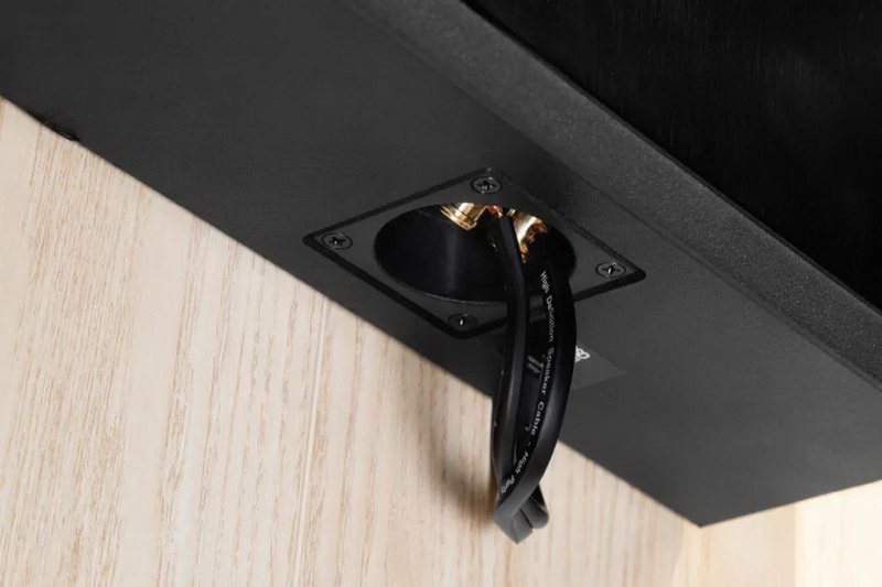 T69的前面板由金屬制成,堅固耐用的箱體由MDF制成,并由連續(xù)的隔板隔開,從而平衡了喇叭單元之間的影響。T69看起來有點(diǎn)笨重,但這身形對音箱來說是很好的:揚(yáng)聲器的重量越大,振動吸收效果越好,音質(zhì)也越好。對于音響的安裝,使用了方便的DogLeg類型的半自動安裝架。由于T69的重量大,為了可靠性,可以使用特殊的支架將其懸掛在墻的支撐結(jié)構(gòu)上。為了連接到放大器,使用了鍍金鉗型端子,該端子接受14 AWG揚(yáng)聲器電纜。