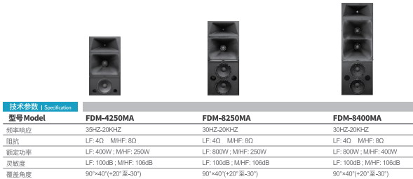 FDM-8400MA/FDM-8250MA三分頻主揚(yáng)聲器特點(diǎn):高效率、高品質(zhì)、低噪聲采用飛達(dá)特有的Auto limiter技術(shù),放出的聲音清晰通透,具有更強(qiáng)的震撼力。而且即便聲音推到極限也不會(huì)失真。4個(gè)10‘’中音單元高性能的磁路設(shè)計(jì),降低了重量提高單元的靈敏度,很好的滿(mǎn)足大功率需求。在高低溫,電壓波動(dòng)大的各種環(huán)境都能穩(wěn)定工作。非常適用于各大中影廳使用,使巨幕影院的音效達(dá)到更高的水準(zhǔn)。