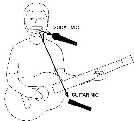 設想一下你以單聲道的模式為一個吉他歌手做擴聲,一支話筒拾取人聲,另一支話筒拾取箱琴。