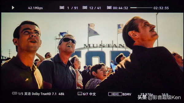自2011年首個沉浸式音效Auro-3D誕生以來,我們終于實現(xiàn)了電影聲音的3D應(yīng)用,可是天空聲道的使用率并不高,沒有幾個片子能把天空聲道用到位。在毫無心理準備的情況下,我被44分32秒的飛機過頭震驚了!讓我想起當年我去機場拍片,飛機在頭頂?shù)涂章舆^,那種泰山壓頂?shù)母杏X終于回來了,第一個片子能把飛機過頭的速度、動態(tài)、規(guī)模、軌跡感完美展現(xiàn)出來,更意想不到的這是一個賽車片,而不是空戰(zhàn)片……我調(diào)出StormAudio風(fēng)暴前級的監(jiān)視器,觀察到所有天空聲道的信息通道都爆表了,這一刻,值得被銘記。慶幸去年在打造這間KK視聽室的時候,設(shè)計了13個頭頂聲道,這下值了!
