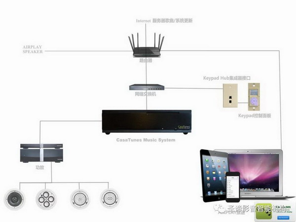 在背景音樂系統(tǒng)的選擇上,圣諦選用來自美國多房間背景音樂系統(tǒng)CasaTunes。