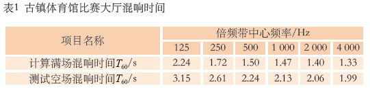 改造后空?qǐng)龌祉憰r(shí)間達(dá)到的指標(biāo)見表1。館內(nèi)舞臺(tái)對(duì)面墻面無回聲,背景噪聲限值:NR≤40;比賽池墻面無顫動(dòng)回聲。
