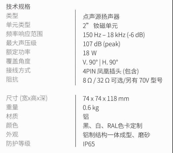 KT2 揚(yáng)聲器采用2寸的釹磁石單元,鋁制一體式外殼具有抑制共振、提升散熱效率的作用,雙音圈的設(shè)計(jì)可以通過音圈之間的全并聯(lián)關(guān)系改變阻抗。全頻設(shè)計(jì)的點(diǎn)聲源揚(yáng)聲器具有自然的聲音重放。對稱式的覆蓋角度配合可調(diào)節(jié)支架,使 KT2 很好的適用于桌面安裝的使用場景。