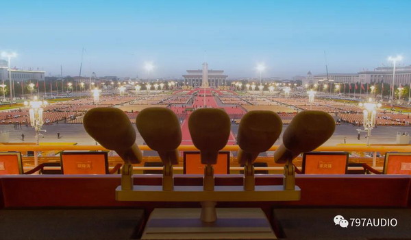在此次保障任務(wù)中,七九七音響公司有一個最為重要的任務(wù),那就是天安門城樓的音響系統(tǒng)建設(shè)和運(yùn)行保障,共分為三大部分:城樓擴(kuò)聲系統(tǒng)集成、城樓首長用演講臺及傳聲器系統(tǒng)的設(shè)計與制作。