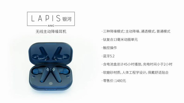 在全新無線系列中,除了頭戴式的耳機,TWS真無線主動降噪耳塞——LAPIS-藍石更是重中之重。俗話說,水清石見,LAPIS-藍石的命名同樣源于自然,并與產(chǎn)品的外觀渾然天成。熟悉極致產(chǎn)品的觀眾一定知道極致的耳塞旗艦SAPPHIRE-藍寶石同樣也是通體藍石。這是一種傳承,也代表著極致對于LAPIS-藍石的重視。