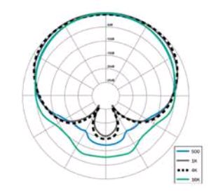 圖4:一個(gè)定向動(dòng)圈麥克風(fēng)的極性模式隨頻率的變化