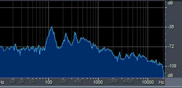 圖6展示出了由一位女士產(chǎn)生的語音波形的FFT,其聲音被描述為“尖銳”。由于樣本長(zhǎng)約5分鐘,因此它包含了她在講話時(shí)通常產(chǎn)生的大部分頻率,我們可以得出結(jié)論,她的聲音天生在300,600和2,000 Hz處有明顯的峰值。2,000-Hz峰值(實(shí)際上是雙峰值)是造成刺耳的原因。