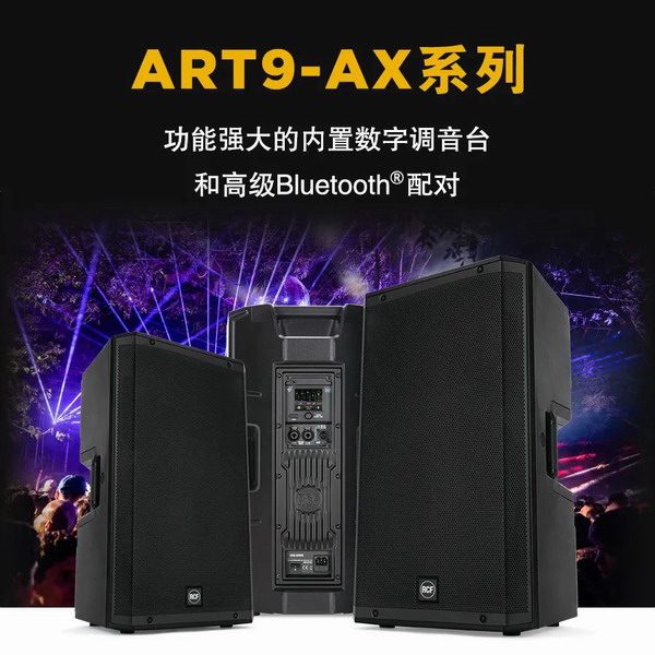 RCF最新推出了全新的ART9-AX系列,ART9-AX是一款具有48V麥克風(fēng)前置放大器和線路輸入、內(nèi)置6通道數(shù)字調(diào)音臺(tái)和高級(jí)DSP、Bluetooth®(藍(lán)牙)流媒體和控制功能的兩分頻揚(yáng)聲器。適用于任何音頻應(yīng)用的頂級(jí)解決方案。