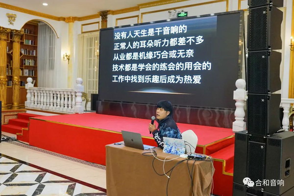 吳曉東老師首次在VA技術(shù)交流會(huì)環(huán)節(jié)出場(chǎng),以幽默風(fēng)趣的方式為大家?guī)?lái)調(diào)音技術(shù)經(jīng)驗(yàn)的分享,詳細(xì)介紹了演出現(xiàn)場(chǎng)音響效果的主客觀的判斷和調(diào)整,以及音響技術(shù)團(tuán)隊(duì)各工位技術(shù)細(xì)節(jié)的規(guī)范做法。