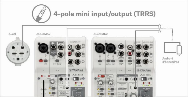 作為 AG 系列的下一代產(chǎn)品, AG06MK2 和 AG03MK2 增加了2個(gè)電容麥克風(fēng)功能 (AG06MK2)、1個(gè) MUTE 按鍵、一個(gè)吉他音箱模擬器,并提升了整體音質(zhì)。它們現(xiàn)在還具有 4 極迷你 I/O 以支持 Android 設(shè)備,并通過 USB 將主要和輔助流媒體設(shè)備連接到 4 極迷你插孔來啟用鏡像或語音聊天直播。AG06MK2 配備了2個(gè)用于電容式麥克風(fēng)的幻象供電麥克風(fēng)輸入,以適應(yīng)更廣泛的直播應(yīng)用,例如談話類型的播客以及樂隊(duì)/合唱音樂表演。