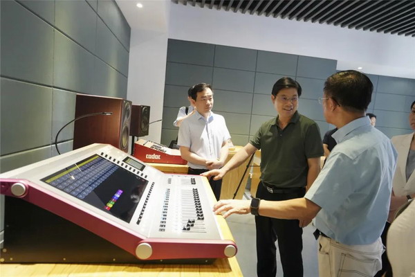 當(dāng)天,干書記一行首先參觀了總面積達(dá)3500平米,全產(chǎn)業(yè)鏈音視頻展示與應(yīng)用為一體的大型科技館——音王音視頻科技館,先后體驗(yàn)了調(diào)音臺(tái)界的“勞斯萊斯”——英國(guó)皇家指定品牌CADAC調(diào)音臺(tái);