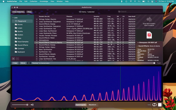 AudioFinder可以通過波形概覽立即顯示聲音,