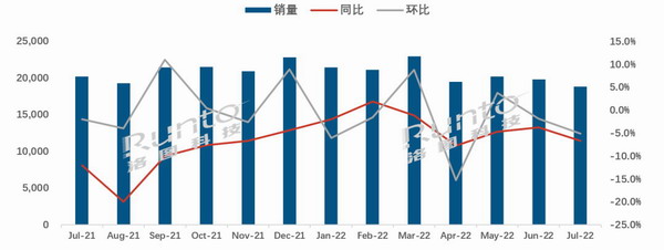 根據(jù)洛圖科技(RUNTO)發(fā)布的《全球電視面板市場(chǎng)出貨月度追蹤》,2022年7月,全球32寸以上的液晶電視面板出貨為18.8M片,同比下降6.7%,環(huán)比下降5.1%。