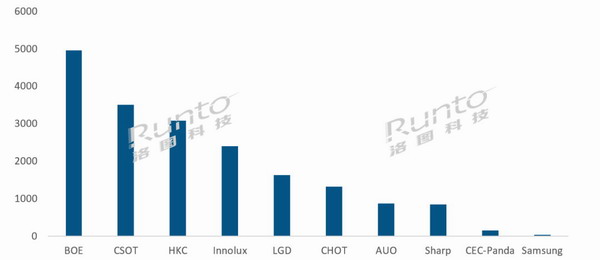 2022年7月全球液晶電視面板廠出貨排名