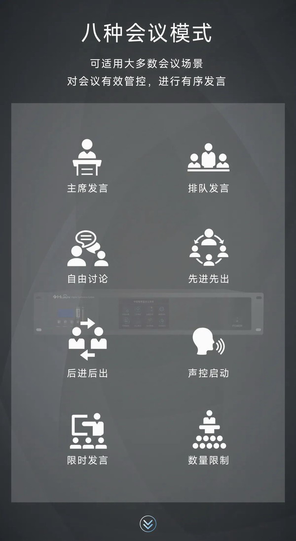 ◆系統(tǒng)支持會(huì)議室合并/拆分功能,具備八種會(huì)議模式,可根據(jù)會(huì)議需求進(jìn)行選擇,適應(yīng)各種大中小型會(huì)議場(chǎng)合。