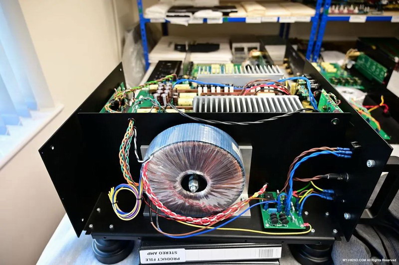 進(jìn)入另一個(gè)房間,這里主要負(fù)責(zé)組裝與包裝等工作,AVID所有產(chǎn)品都是在自家工廠純手工組裝,照片中資深電子工程師David Sharp,正在非常熟練地組裝AVID放大器。