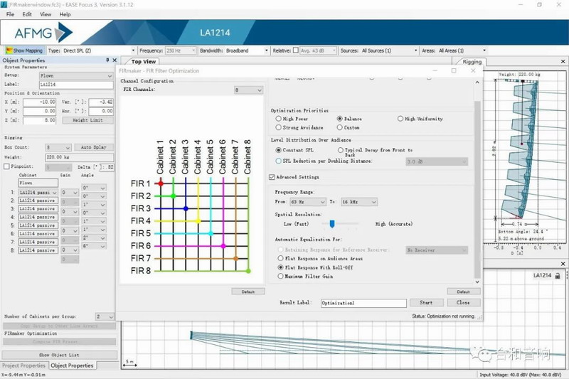 “VA品牌的主要線陣列音箱都有GLL數(shù)據(jù),VA用戶們也熟悉在EASE Focus中進(jìn)行擴(kuò)聲系統(tǒng)設(shè)計,這為FIRmaker技術(shù)的應(yīng)用打下了良好的基礎(chǔ)。用戶只需使用包含F(xiàn)IRmaker授權(quán)的新版GLL數(shù)據(jù),就可以在EASE Focus中使用FIRmaker做優(yōu)化調(diào)試并導(dǎo)出FIR濾波器。硬件上,PRO X系統(tǒng)和升級后的LAL/LAM機(jī)柜將標(biāo)配支持FIRmaker,而較早擁有LAL及LAM系統(tǒng)的用戶,只需增加部分FIR處理器和功率放大器便能使用FIRmaker,音箱系統(tǒng)不需要做任何改動! --- 伍慧陽先生補(bǔ)充到。
