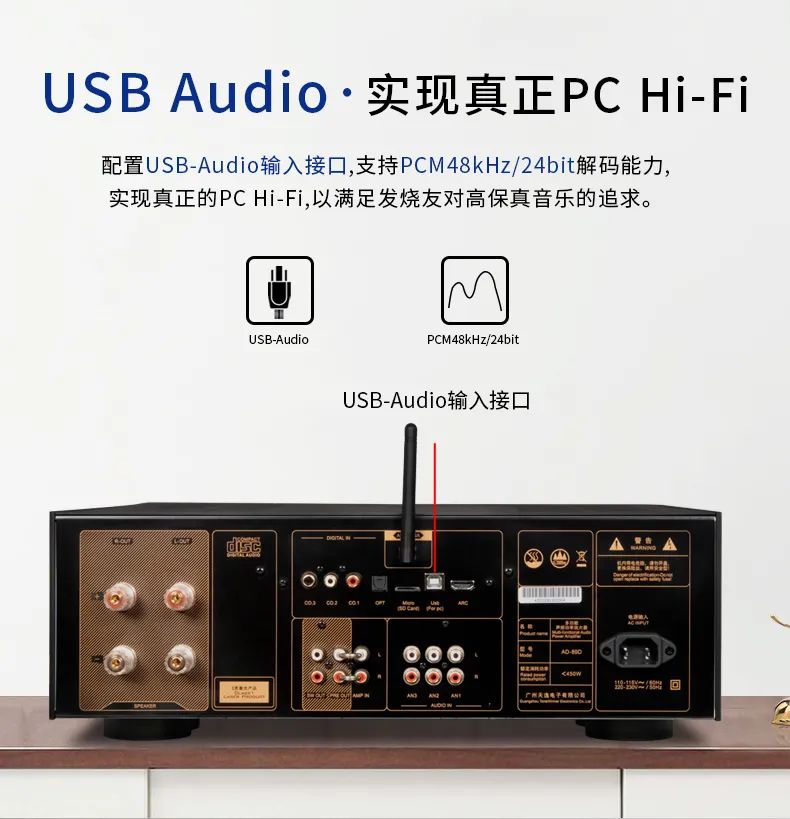 以天逸30年高保真Hi-Fi設(shè)計(jì)經(jīng)驗(yàn)、技術(shù)功底及聲學(xué)底蘊(yùn)作基石,新品AD-89D采用超甲類電路設(shè)計(jì),特別增加CD播放功能,并支持藍(lán)牙/U盤/TF卡等流媒體播放功能,提供更多樣的音源輸入選擇。此外,AD-89D還配有USB-Audio輸入接口、HDMI ARC音頻回傳以及超低音信號(hào)輸出接口,專為新生代高品位發(fā)燒友量身打造。