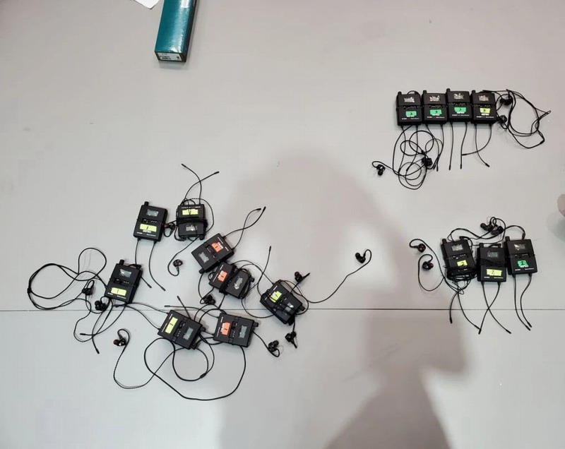 4臺(tái)MI909T數(shù)字監(jiān)聽發(fā)射機(jī),數(shù)字立體聲發(fā)射/接收,在DSP數(shù)字音質(zhì)處理與數(shù)字選訊技術(shù)的搭配下,提升了信噪比和動(dòng)態(tài)范圍。將不同場景所需的配樂及各組演員所需的節(jié)拍發(fā)送到相對(duì)的接收腰包。