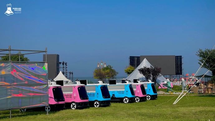 在現(xiàn)場,還有幾十臺無人駕駛的冰淇淋售賣車。觀眾直接掃碼就可以買到泡泡島音樂節(jié)定制的文創(chuàng)冰淇淋。“就賣冰棍這一件事兒,加在一起,我可能開了幾十個小時的會!睆埩埓T說。