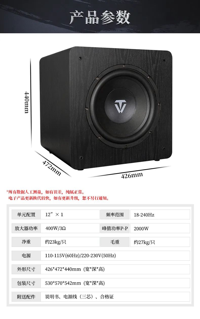 1、12英寸、大功率雙磁鋼喇叭單元;低頻量感足,下潛深;高強(qiáng)度一體沖壓成型盆架,有效減少共振,保證低頻表現(xiàn)更純正;