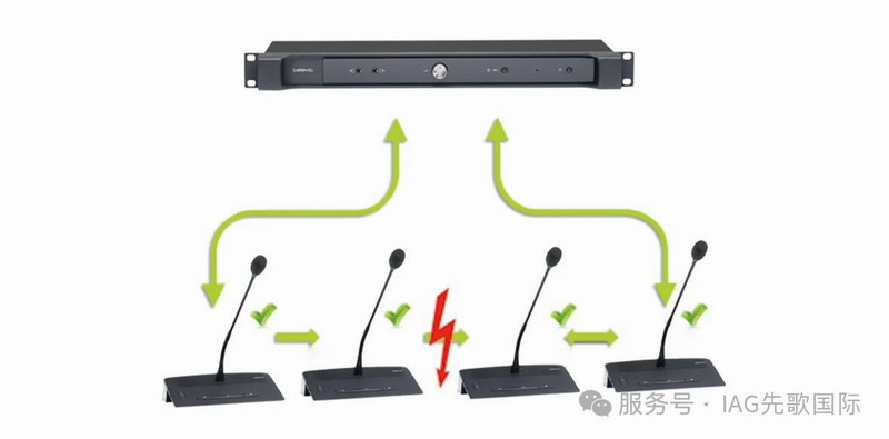 只需用標(biāo)準(zhǔn)屏蔽網(wǎng)線將討論單元與中央單元連接起來,接通電源即可開始會(huì)議。