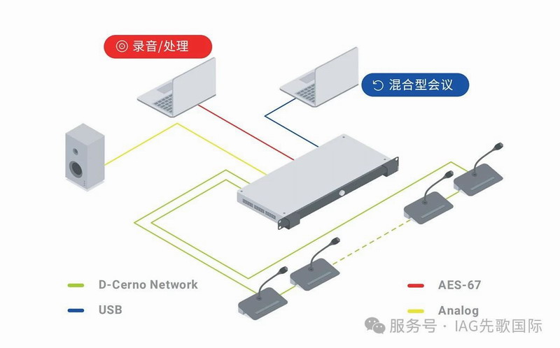 D-Cerno AE會(huì)議主機(jī)最多可控制50 個(gè)會(huì)討單元,并可通過 USB 端口、AES-67、模擬音頻與任何混合會(huì)議平臺、DSP 或外部 AV 設(shè)備連接起來,從而輕松實(shí)現(xiàn)與 D-Cerno AE 的集成。