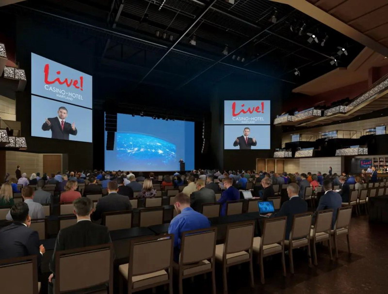THE HALL at LIVE!占地 75,000 平方英尺(約7000㎡),可容納4000座。是馬里蘭州和安妮阿倫德爾縣所有賭場中最大的劇院,于2019年12月正式開放。可以舉辦巡回演出、喜劇表演、冠軍拳擊賽等活動,宴會座位最多可容納1600人。設(shè)有三層座位:池座層、私密的包廂層和豪華的VIP層,配有私人酒吧、休息室和陽臺。耗資1000萬美元的先進音頻和視頻系統(tǒng)提供絕對完美的音效和令人驚嘆的視覺效果。內(nèi)置表演舞臺周圍環(huán)繞著巨大的高分辨率LED屏幕,中央是一個128英尺(約39m)的屏幕,它的兩側(cè)是兩個寬60英尺(18.3m)×高40英尺(約12m)的屏幕。