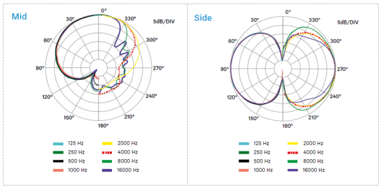 - 窄XY模式:50 mV/Pa;參考值-26 dB(1V/Pa)