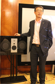 環(huán)顧展廳,我們看到了一套純白色家庭影院音箱系統(tǒng),陳永林先生介紹說(shuō),Theater® 6 Hybrid "5.2.-Set"家庭影院系統(tǒng)主要由H 600 F主箱、H 600 C中置音箱以及H 600 D環(huán)繞聲音箱組成,Theater 6 Hybrid在音箱設(shè)計(jì)上采用密閉式箱體結(jié)構(gòu)與二/三分頻設(shè)計(jì),以追求更快的響應(yīng)速度與更豐富的聲音細(xì)節(jié)與層次,同時(shí)也能做到更加更加平直的頻響曲線,使得聲音的還原度更加真實(shí)。 另外,非常值得一提的是德國(guó)Teufel總部將委派10-15人的設(shè)計(jì)研發(fā)團(tuán)隊(duì),針對(duì)中國(guó)市場(chǎng)的客戶(hù)需求來(lái)開(kāi)發(fā)新產(chǎn)品。他們深信Teufel想要穩(wěn)步進(jìn)入中國(guó)市場(chǎng)必然需要本土化的內(nèi)容。所以今年將會(huì)陸續(xù)發(fā)布3-5款新產(chǎn)品,請(qǐng)大家拭目以待吧!